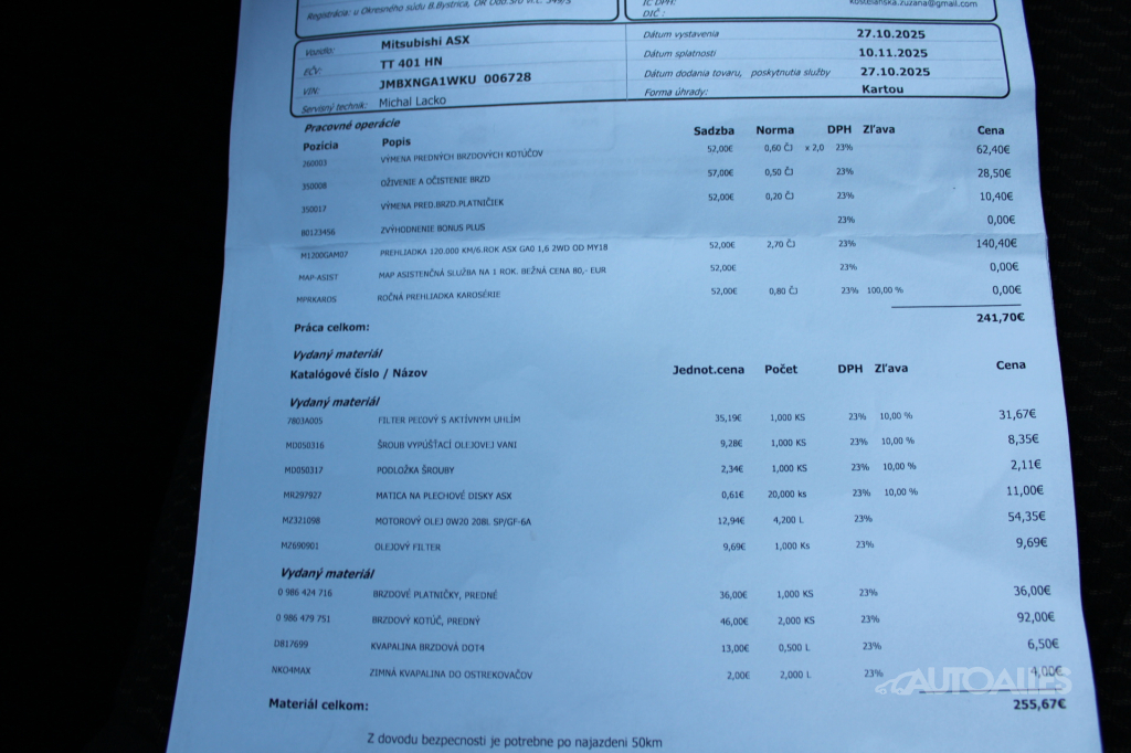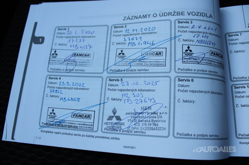 Vozidlo ako nové kupované v SR/ 2.majiteľ. Záruka na skutočný stav tachometra. Originálne najazdené kilometre si môžete overiť aj u ktoréhokoľvek oficiálneho predajcu MITSUBISHI. Posledná servisná prehliadka 10/2025 pri 112 310 km spojená s výmenou oleja a filtrov. 10/2025 menené predné brzdy (kotúče + platničky)+ urobená prehliadka po 120 000km / 6rokov, servis vykonaný v originálnom servise Mitsubishi. Skelet vozidla je nehavarovaný. Auto je v TOP stave, pravidelne servisované, radenie je presné, nápravy sú tiché a pevné, opticky aj technicky je v poriadku, interiér nefajčený a krásne vonia, momentálne bez ďalších investícií, iba sadnúť a jazdiť. Motor vozidla sa vyznačujem výbornou spoľahlivosťou. Na vozidle sú namontované plechové disky na zimných pneumatikách. Ku vozidlu je aj sezónne prezutie /4ks letné pneumatiky na originálnych zliatinových diskoch + šróby. K dispozícii je servisná kniha, 2 kľúče a aj návod na obsluhu. Ku vozidlu je vystavený výpis zo štátneho Registra prevádzkových záznamov vozidiel - ODO-PASS, ktorý zobrazuje históriu najazdených kilometrov vozidla! Na vozidlo je možný úver! Vybavíme ho priamo u nás na počkanie, výšku akontácie a splátky Si nastavíte sami. AUTOALLES: najväčší slovenský autobazár, už od roku 1990, doživotná záruka na pôvod vozidla s garanciou vrátenia peňazí. Tešíme sa na vašu návštevu.